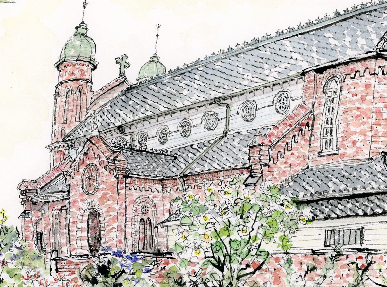 葦ペン、インク、透明水彩絵の具で描いたスケッチ原画