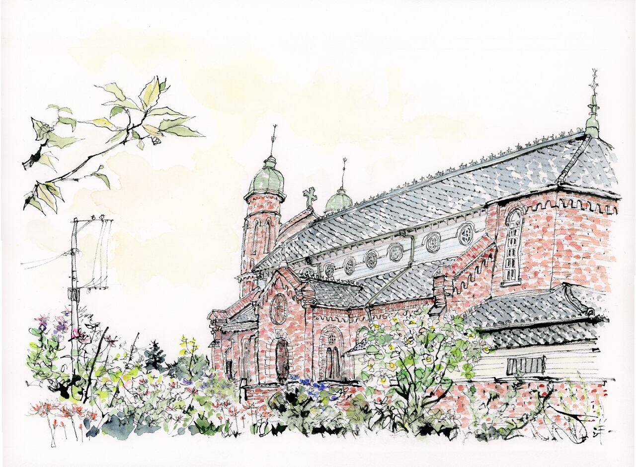 赤煉瓦の天主堂が晩春の麦畑の中にそびえる様子の美しさには感動します。