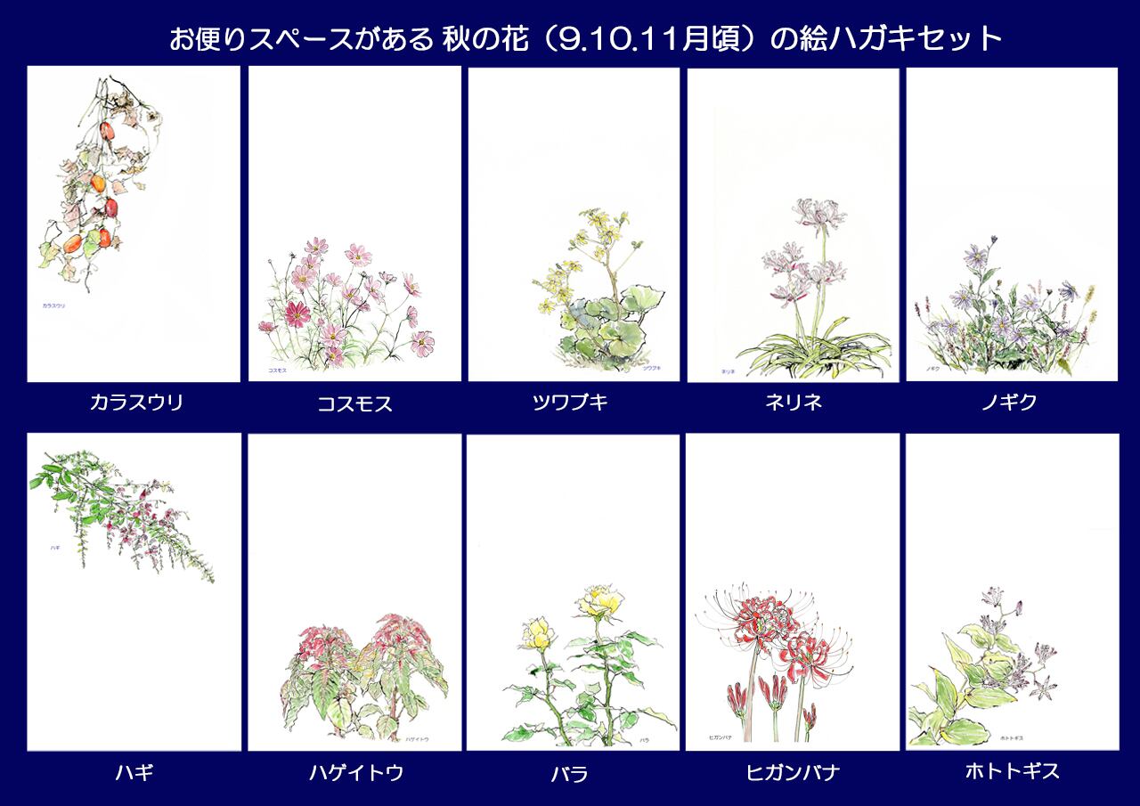 この秋の花の絵ハガキセットが、あなたの大切な人や、縁ある方に届ける思いをより特別なものにしてくれます。是非このハガキを使って、心を込めたメッセージを贈ってみてください。